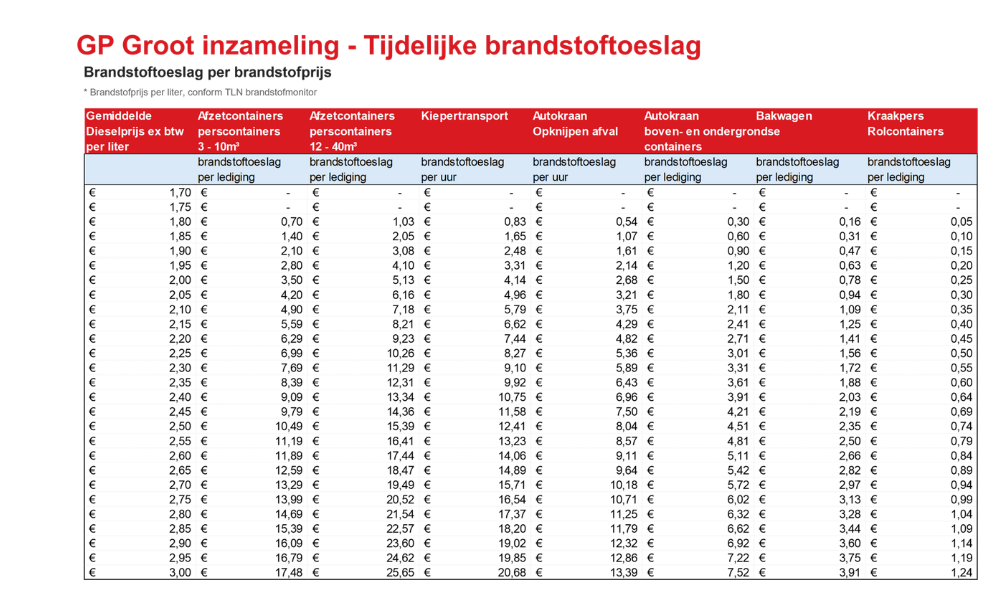 Wanneer de brandstofprijzen stijgen, nemen ook de kosten voor routes, inzamelritten en transportbewegingen toe. Een tijdelijke brandstoftoeslag maakt het mogelijk om die extra kosten op een transparante manier door te berekenen.